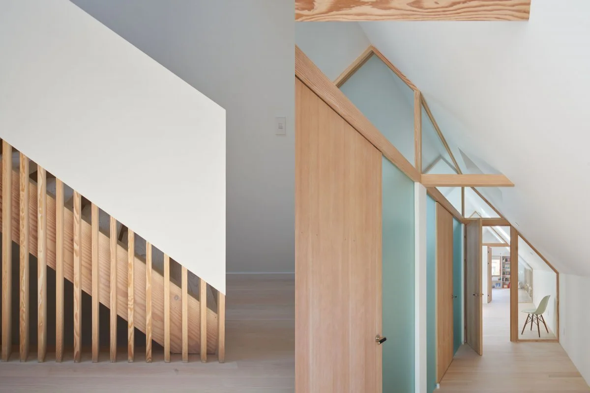 The Nordic modern aesthetic came to life through vertical grain Douglas fir floors, whitewashed with a Nordic treatment to create a light, airy feel throughout the home. The renovation included annexing the attic to add a master suite and additional bedroom, connected by a skylight-lit catwalk that maximized natural light. Wood-framed glass partitions on the top floor provided privacy while maintaining an open, light-filled atmosphere. A central atrium, along with strategically placed skylights, further flooded the space with natural light, enhancing the minimalist design and creating a serene, modern living environment that reflected the homeowner's Scandinavian roots.
