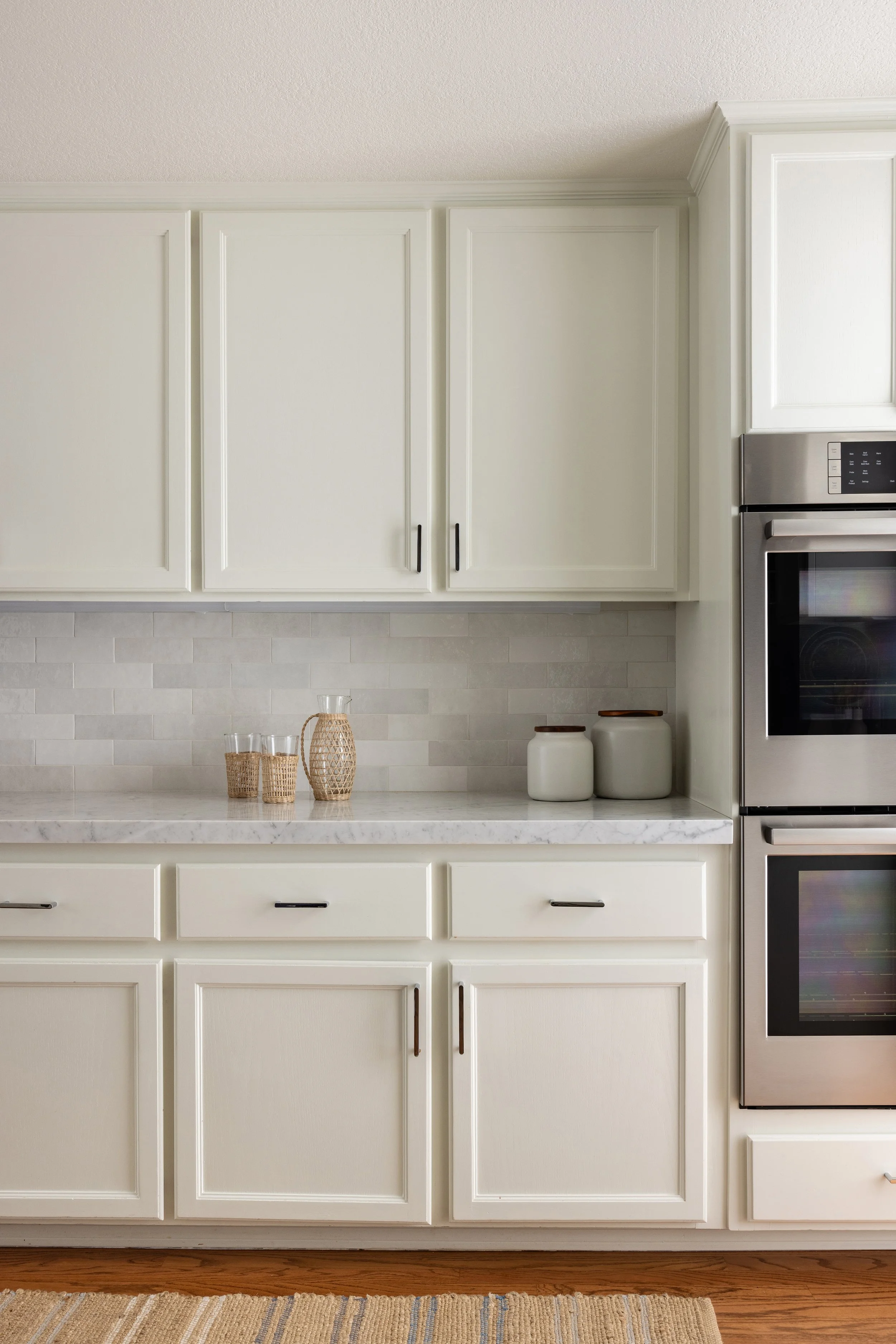 With a baby due just days after closing on the house and a move-in date set for mid-March, the renovation had to be completed swiftly. Careful planning and project management were essential to ensure that the home was move-in ready within a tight schedule. One of the key goals for the renovation was to make the house energy efficient and fully net zero. This approach involved installing solar panels and a wood-burning fireplace to offset the electrical bill. The home’s layout was generally good, the team made only one structural change—moving a single wall—to improve flow while keeping the renovation focused on aesthetic and functional upgrades. The home was trimmed out with decorative elements, including built-in bookshelves and formal columns in the entryway, adding elegance and functionality. The existing oak floors were refinished to integrate them with new flooring to create a seamless transition.